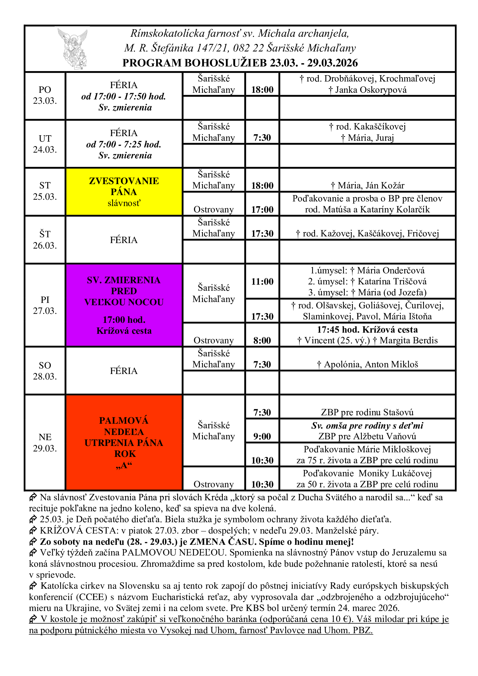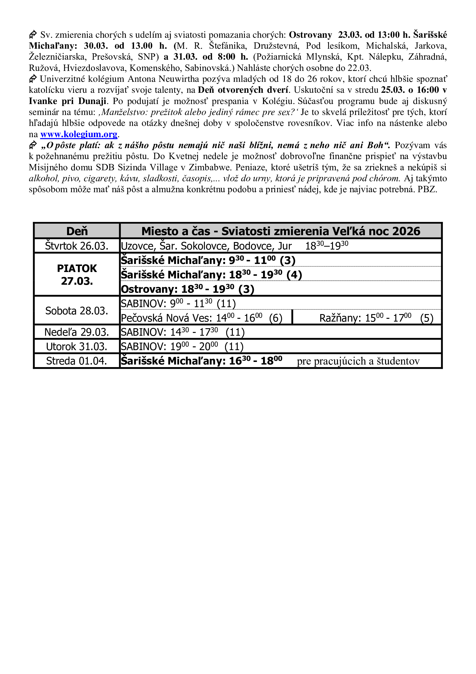 FARSKÉ OZNAMY 30.03.-05.04.2026